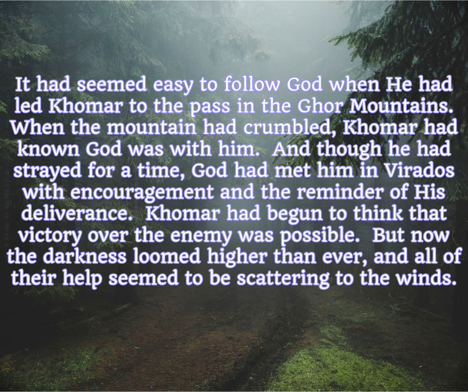 So many times we feel like Khomar. For every victory, there is a valley that seems darker than the one before. It is in times like these that we have to remind ourselves of the victories that have come before. God has yet to fail us and He won’t in future either. Even when we don’t understand the why’s and wherefore’s, we can trust in the One who holds the future.